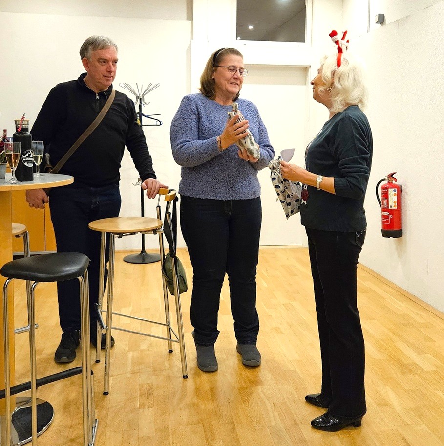 … sowie einem besinnlichen Rückblick stieß man mit dem Tänzerschlachtruf „Quick-quick-slow!“ auf ein gelungenes gemeinsames Jahr an. Fritz feierte an diesem Tag seinen Geburtstag und spendierte großzügig alle Getränke.