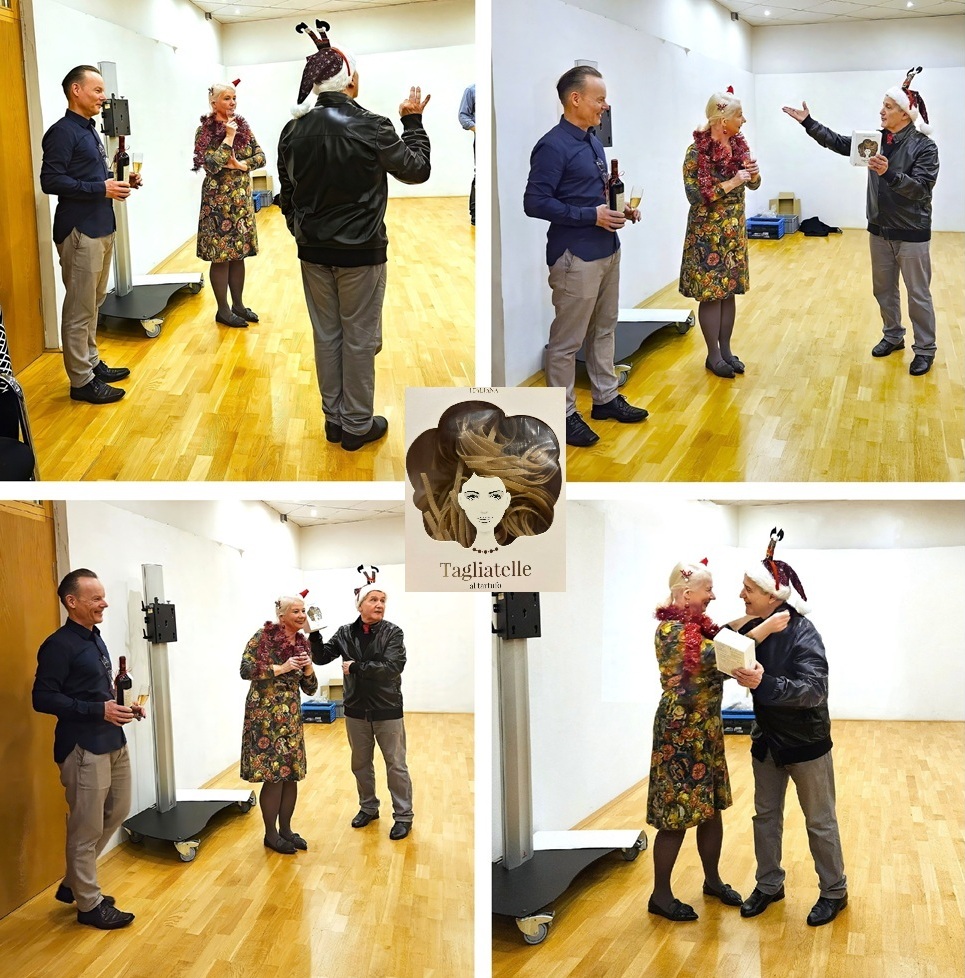 bei ihren märchenhaften Supervisoren, die ihrerseits dankbar das von Birgit überreichte Weihnachtssäckchen entgegennahmen.