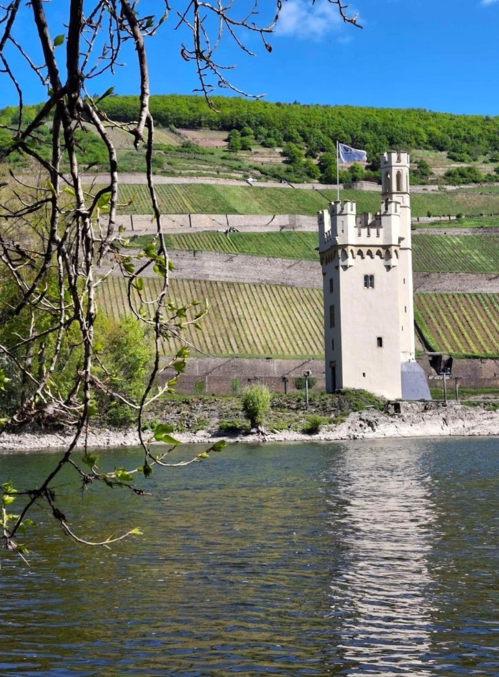 Diesmal ging es aber statt in den Norden in die umgekehrte Richtung nach Süden. Nach umleitungsbedingten Verzögerungen winkte endlich kurz vor dem Ziel der Mäuseturm auf der Rheininsel bei Bingen herüber, der von Wildgänsen bevölkert war.