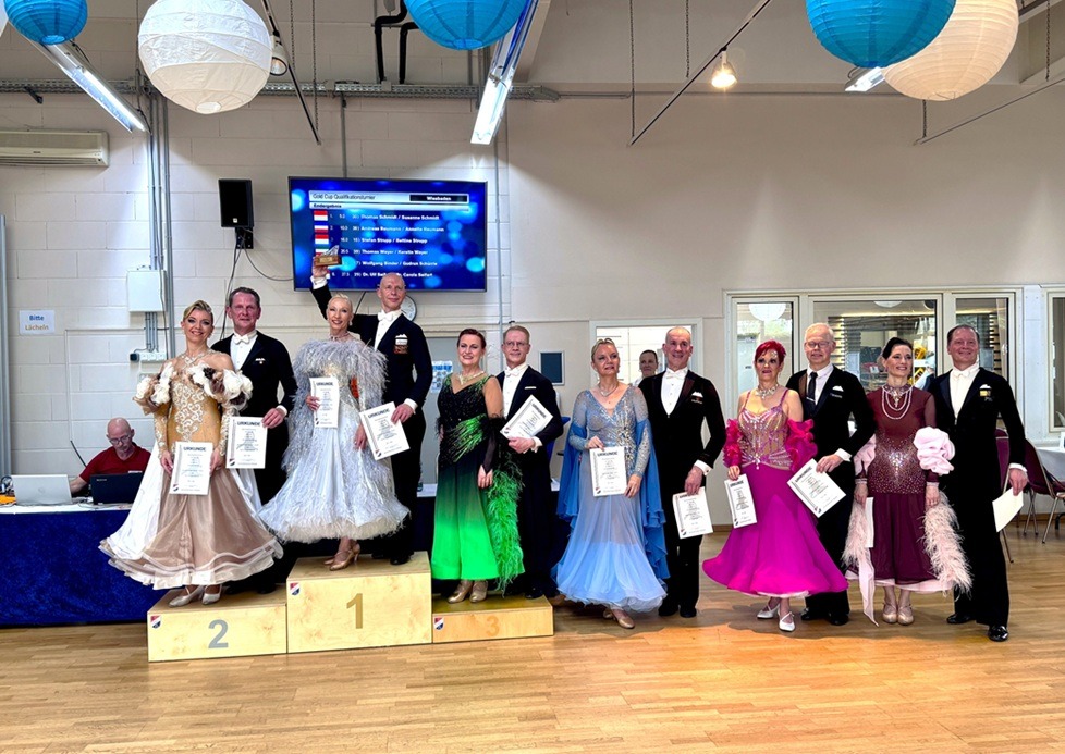 Vor dem zweiten Qualifikationsturnier des Diamond Cups war schon das des Gold Cups im Gange. Turnierleiter Hans-Jürgen Burger, seinerzeit selbst Weltmeister auf dem Tanzparkett, führte souverän durch den spannenden Tanznachmittag. Da sich die Turnierleitung für offene Wertungen während des ganzen Wochenendes entschieden hatte, wurde das dichtgedrängte Publikum bereits im Finale Zeuge des unangefochtenen Sieges von Thomas und Susanne Schmidt vom Schwarz-Rot-Club Wetzlar, die das Turnier mit 24 Einsen gewannen und damit ihre schon beim ersten Qualifikationsturnier in Holm demonstrierte Ausnahmestellung überlegen bestätigten. Mit einem Ehrentanz beendeten sie dieses erste Turnier am Samstagnachmittag.