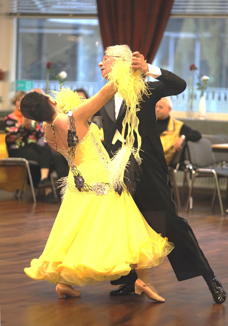 Die Europameisterschaft der Senioren IV verlief leider ohne Beteiligung aus unserem Club. In dem ebenfalls riesigen Starterfeld von 115 Paaren aus insgesamt 15 Nationen kam allerdings die große Mehrheit aus Deutschland. Den Kampf um den Titel machten schließlich zwei aus der Altersklasse III hinzugekommene Überflieger unter sich aus: die Hamburger Jens und Maike Wolff vom Club Saltatio und die Bayern Gerhard und Marion Funk vom TSC dancepoint Königsbrunn. Am Ende hatten die Hamburger mit drei zu zwei gewonnenen Tänzen die Nase vorn und wurden damit umjubelte neue Europameister.