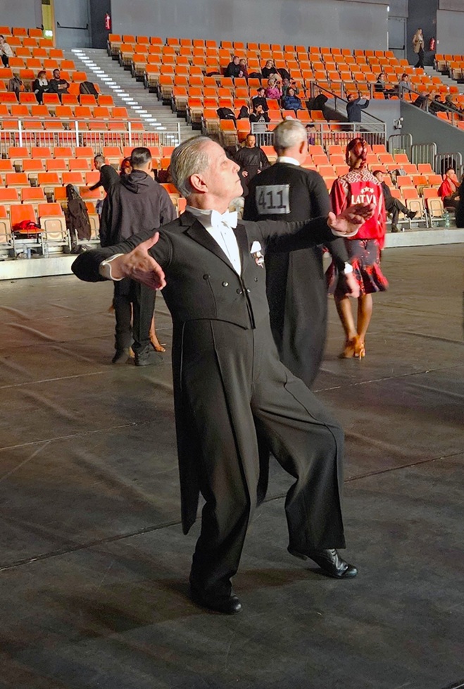 Leider traten schließlich nur drei Paare aus drei Nationen bei den Senioren V an. Der Vorteil: Viel Platz auf der Riesenfläche, so dass Birgit und Marcel gute Entfaltungsmöglichkeiten hatten und diese auch überzeugend nutzten.