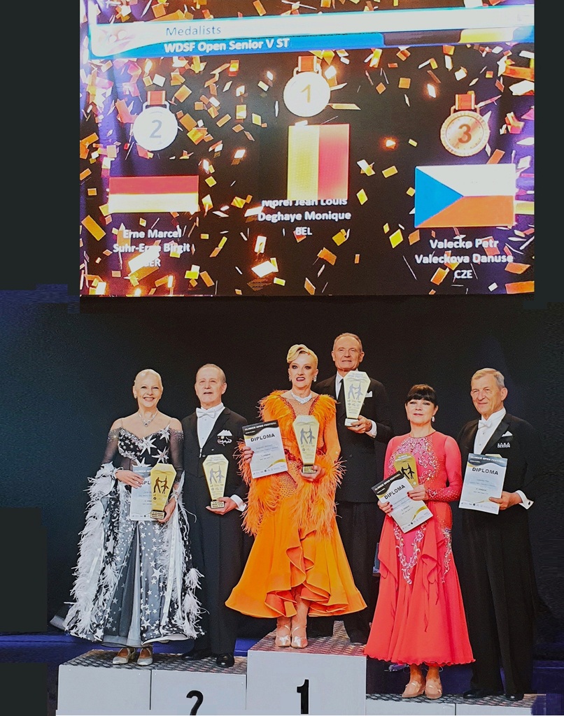 Erstaunen, als statt dem bis dahin für die WDSF Open Senior V gemeldeten Paar aus Italien, das Birgit und Marcel in Skopje deutlich hinter sich gelassen hatten, der Name der Belgischen Meister Jean-Louis Morel und Monique Deghaye auf dem Bildschirm erschien.