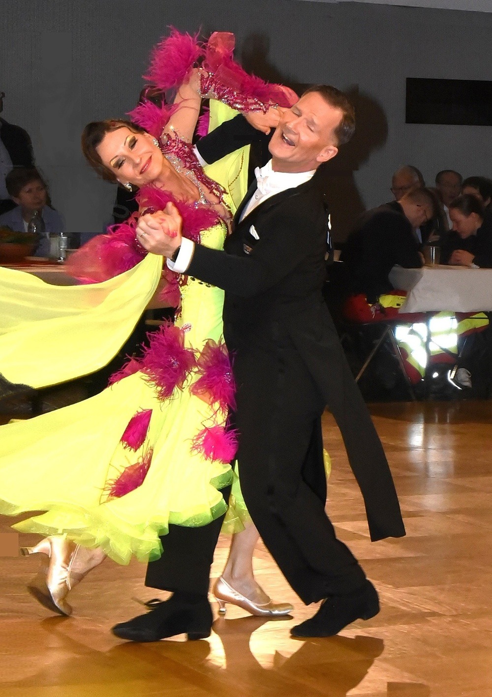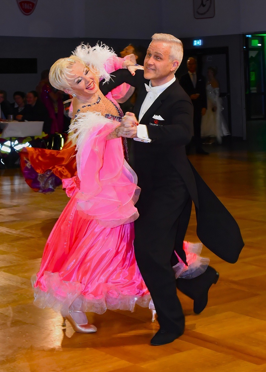 Ihr souveräner und sportlicher Tanzstil überzeugte das Wertungsgericht vollends: Als einziges Paar erhielten sie im Semifinale die volle Kreuzchenzahl 35. Damit waren sie glasklar für das Finale qualifiziert, das von insgesamt sechs Paaren aus den drei Bundesländern Hamburg, Niedersachsen und Schleswig-Holstein bestritten wurde. Hier sah man viele neue Gesichter, denn etliche Paare aus der jüngeren Altersklasse Sen III S waren hinzugekommen. Das Publikum sparte nicht mit stürmischem Applaus für die fulminanten Darbietungen der Finalisten. Nach einem furiosen Endspurt und dem obligatorischen „Schaulaufen“